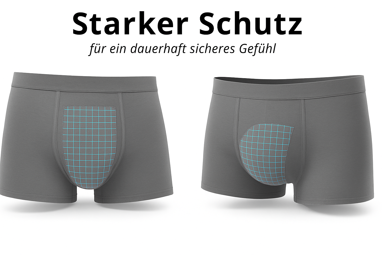 Hier kommt echte Unterwäsche, speziell für Männer entwickelt, die aufsaugt, ohne je zu verraten.