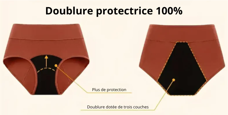 La troisième couche est un bouclier imperméable discret qui empêche les fuites, vous offrant une confiance et une protection totales dans toutes les situations.